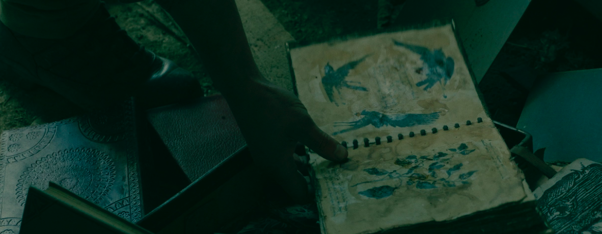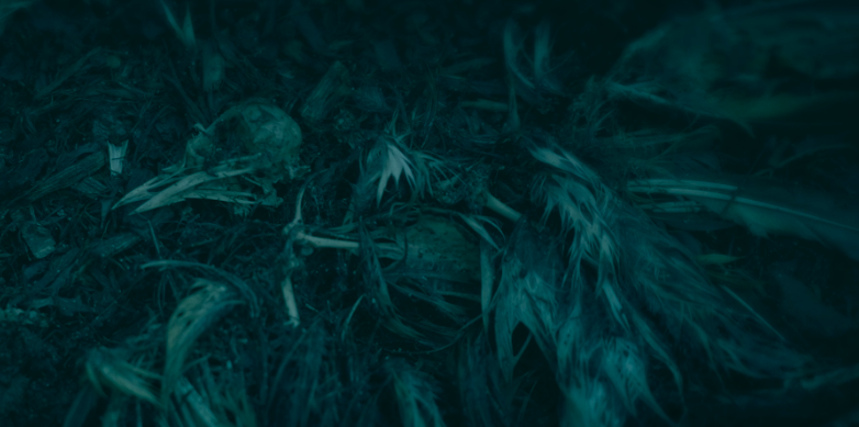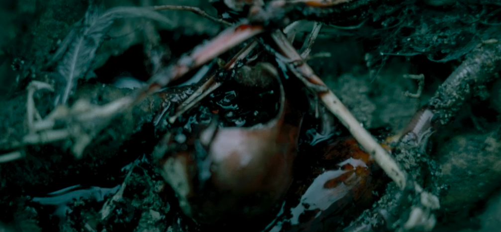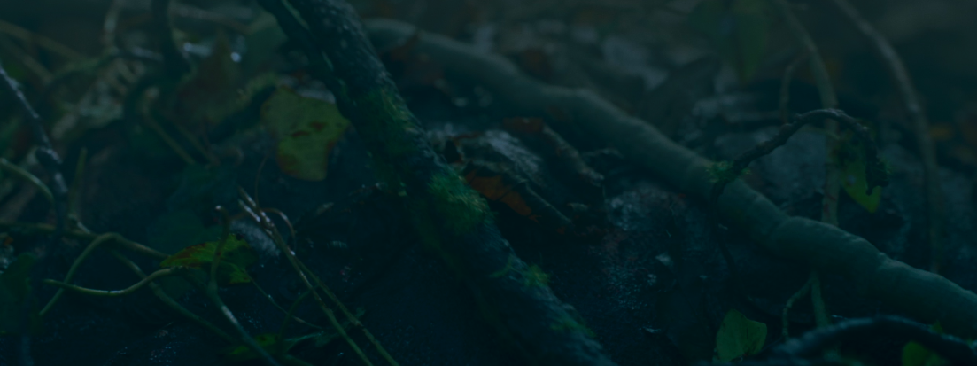 Vines and leaf litter collected from local forests were used to create the disturbing end scene.