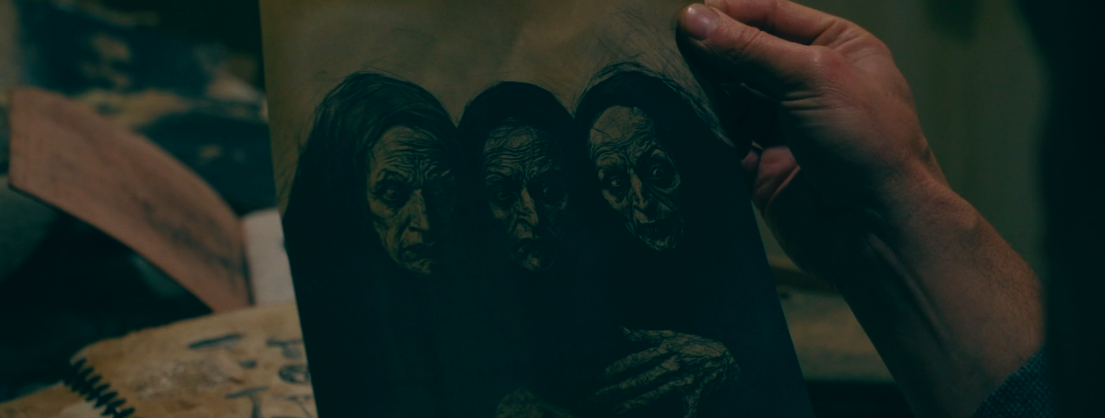 Never leaving things to chance, JP knew exactly how he wanted the witches grimoires to look so enlisted his artist wife to help make them. With paper ageing, deckle edging, image transfers and book binding the creepy props were created.